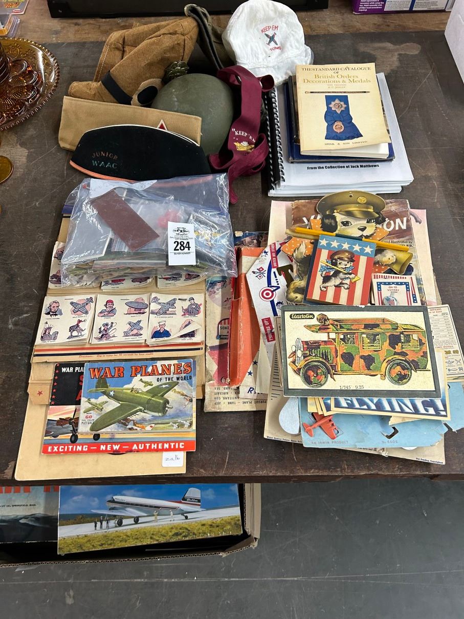 Asst. Military Memorabilia w/Vintage Transfer Pictures, Hats