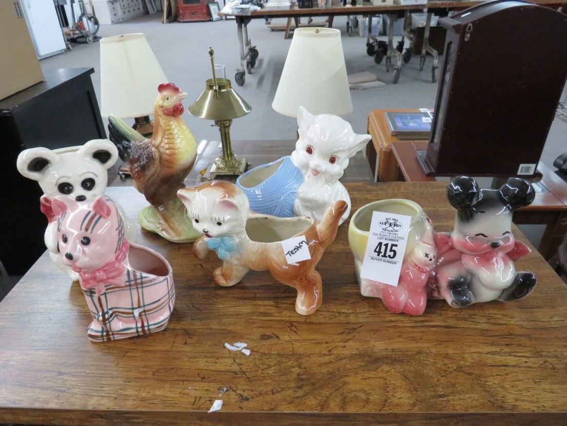 Asst. Porcelain Cat/Mouse/Bear/Rooster Vase and Décor