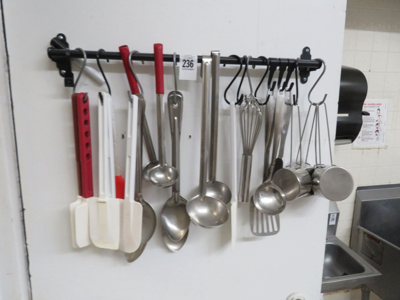 Asst. Spoons, Ladles, Whip and Utensils On Rack