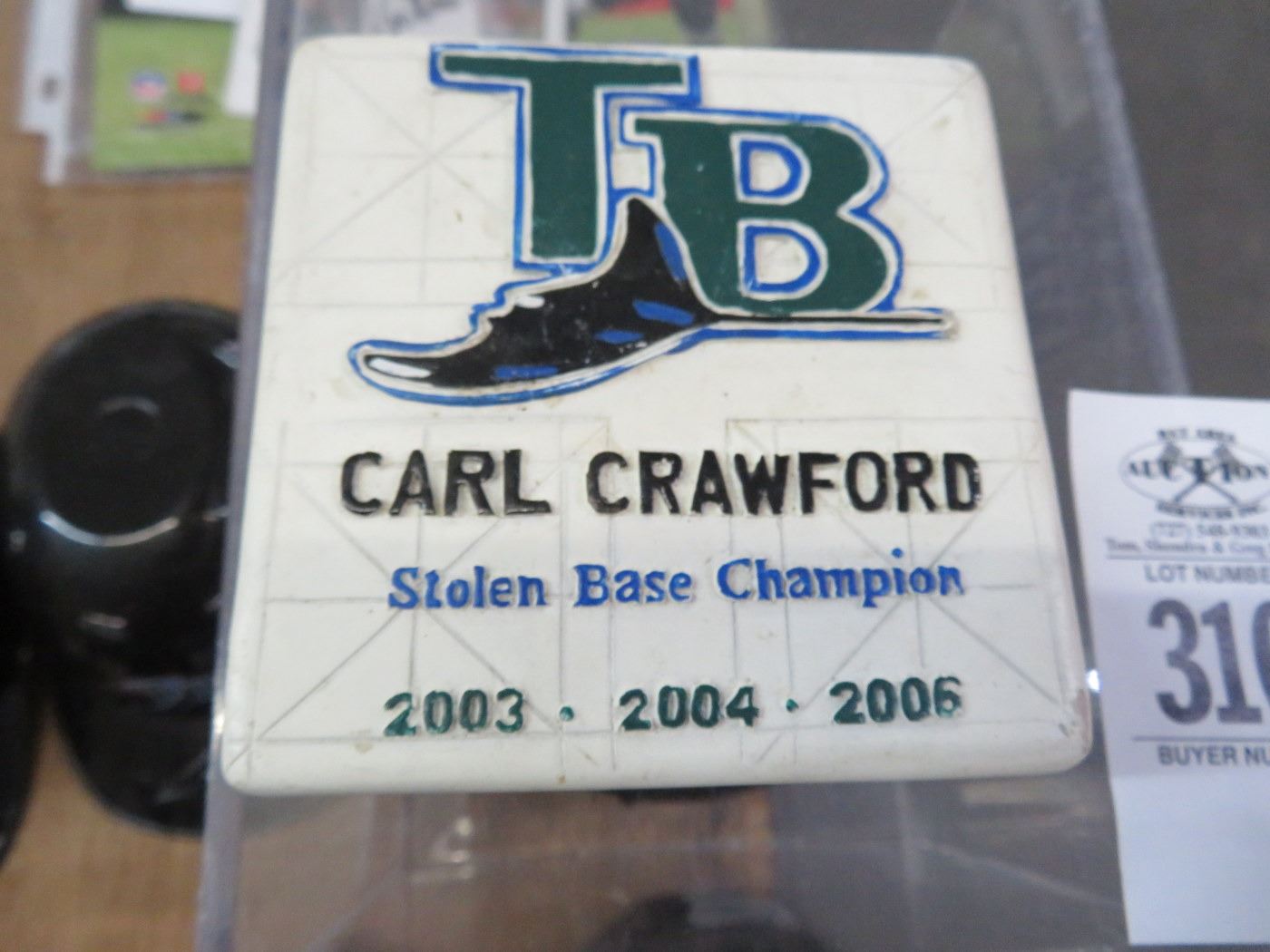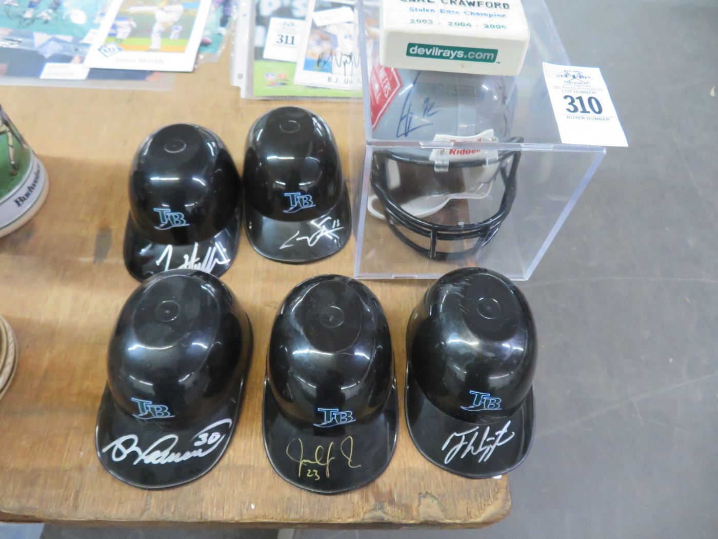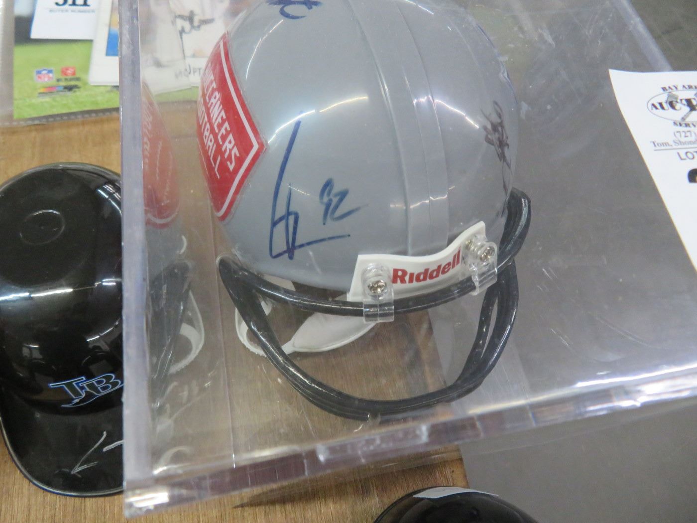 Autographed Bucs Football Helmet In Showcase, Autographed TB Rays Mini Helmets