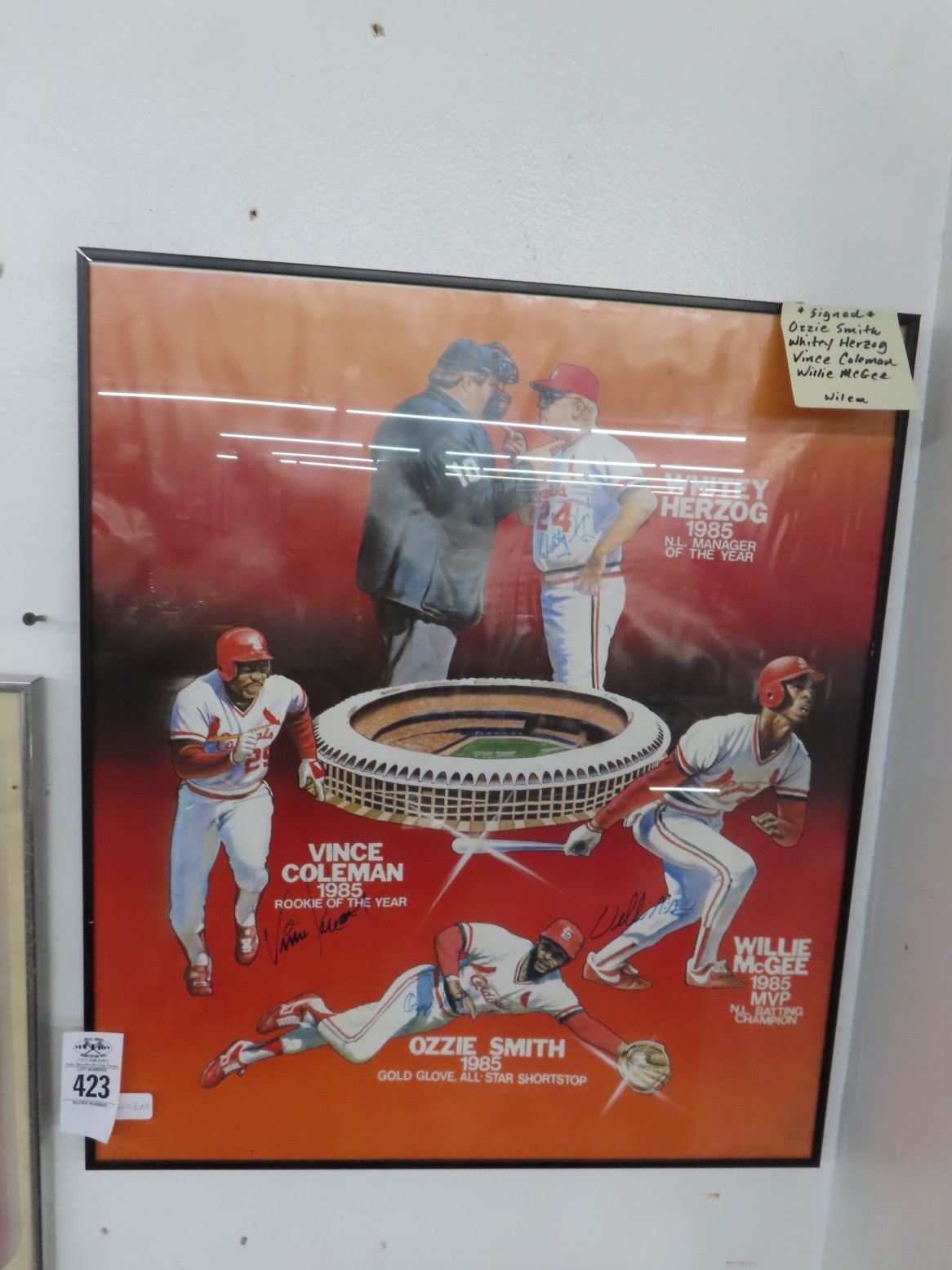 Autographed Poster Signed Ozzy Smith/Whitey Herzog/Vince Coleman/Wiley McGee