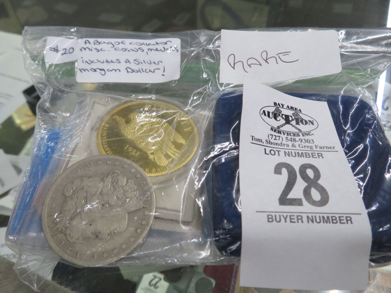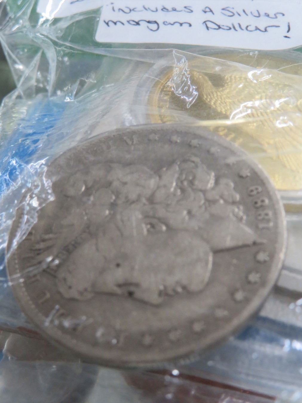 Bag of Misc. Medals and Coins Including a Silver Morgan Dollar