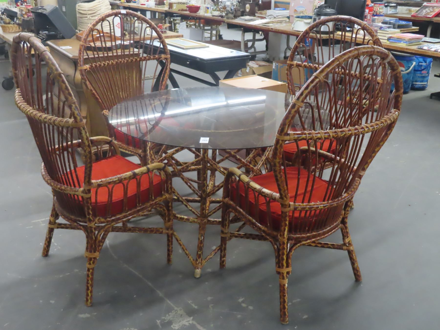 Bamboo Base Glasstop Table w/4 Matching Armchairs