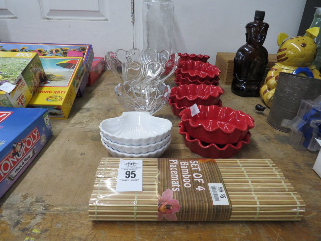 Bamboo Placemats, Red Ruffles Bowls, Seashells, Crystal Bowls