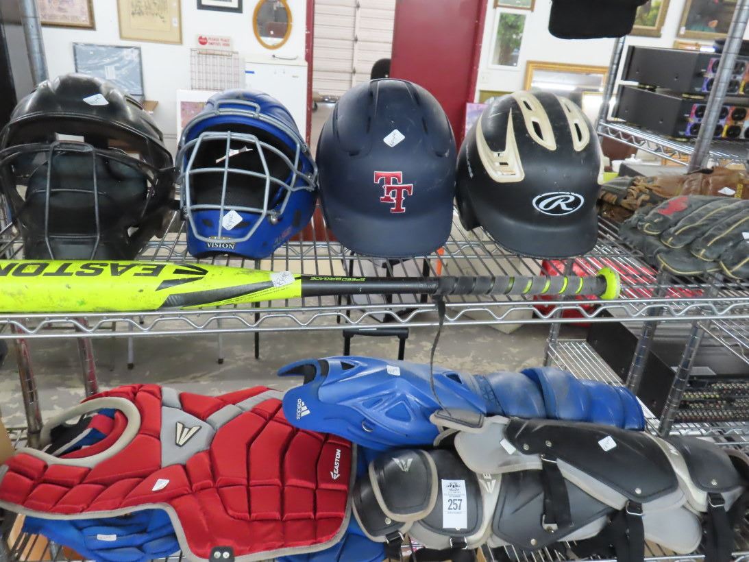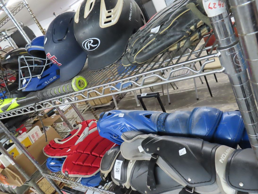 Baseball Bat, Helmet, Glove, Protective Pads - 2 Shelves