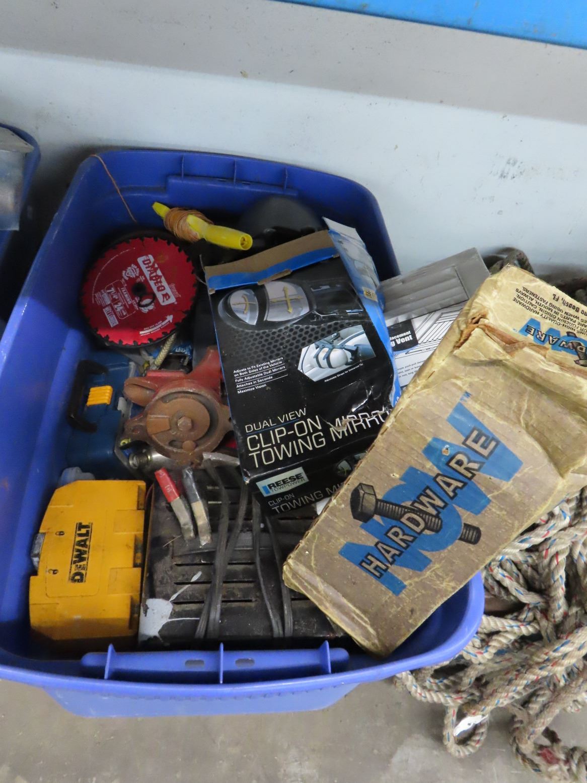 Battery Charger, Vise, Hardware Bins, Supplies in Tub