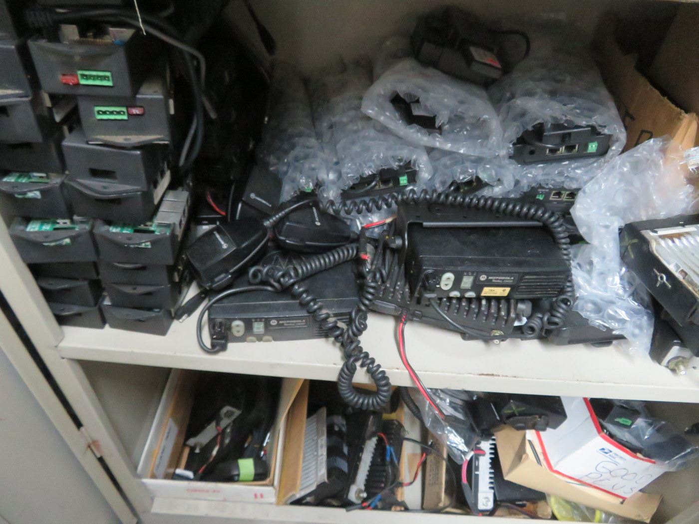 Beige Metal Storage Cabinet w/CB Radios & Asst. Cab Electronics & Supplies