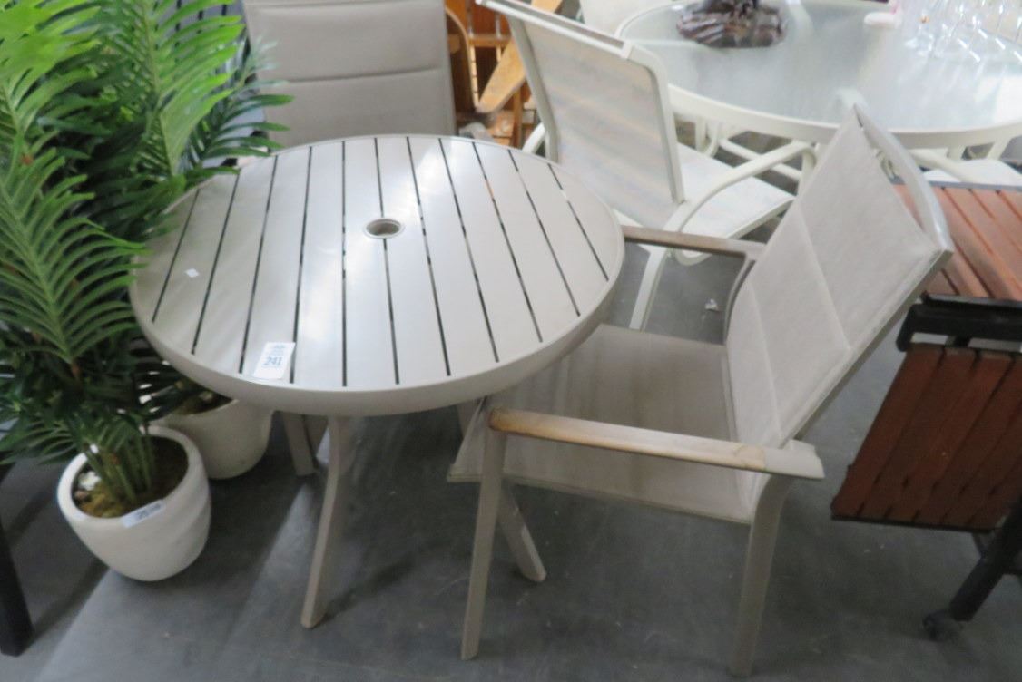 Beige Two Seat & Round Table Outdoor Patio Set w/2 Chairs