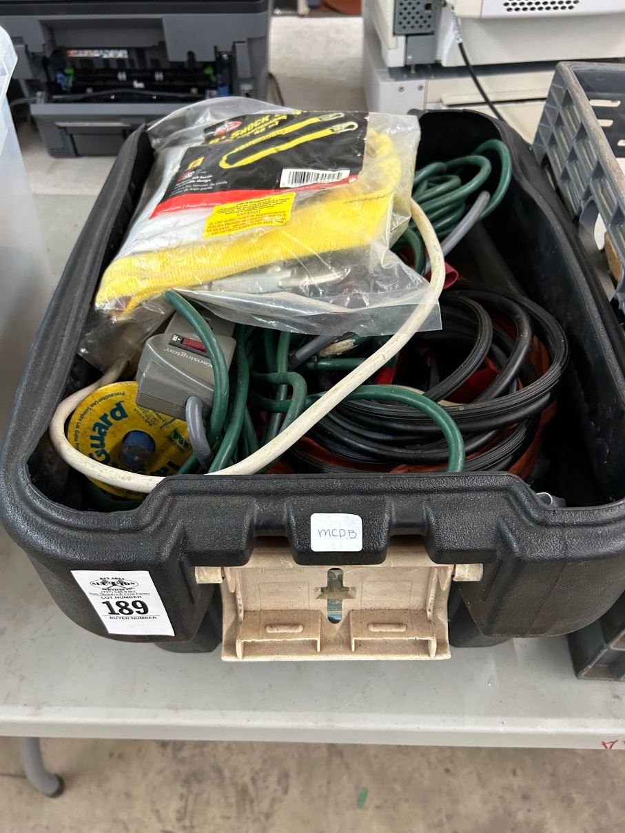 Bin w/Ext. Cords, Jumper Cables, Lanyards, Splitters