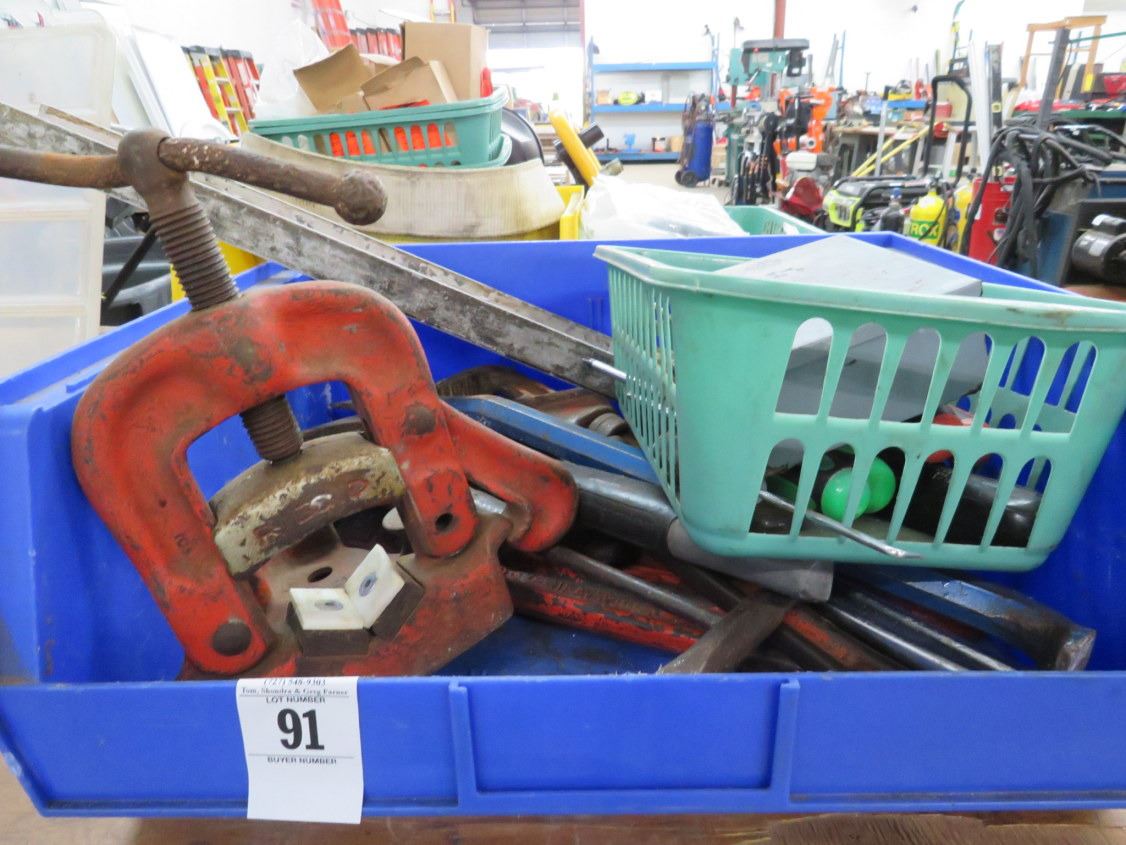 Bin w/Pipe Vise, Hand Tools, Pipe Wrench, Level