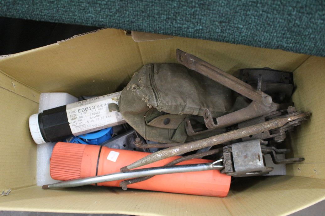 Bin w/Welding Rods, Electrical Hardware, Tools