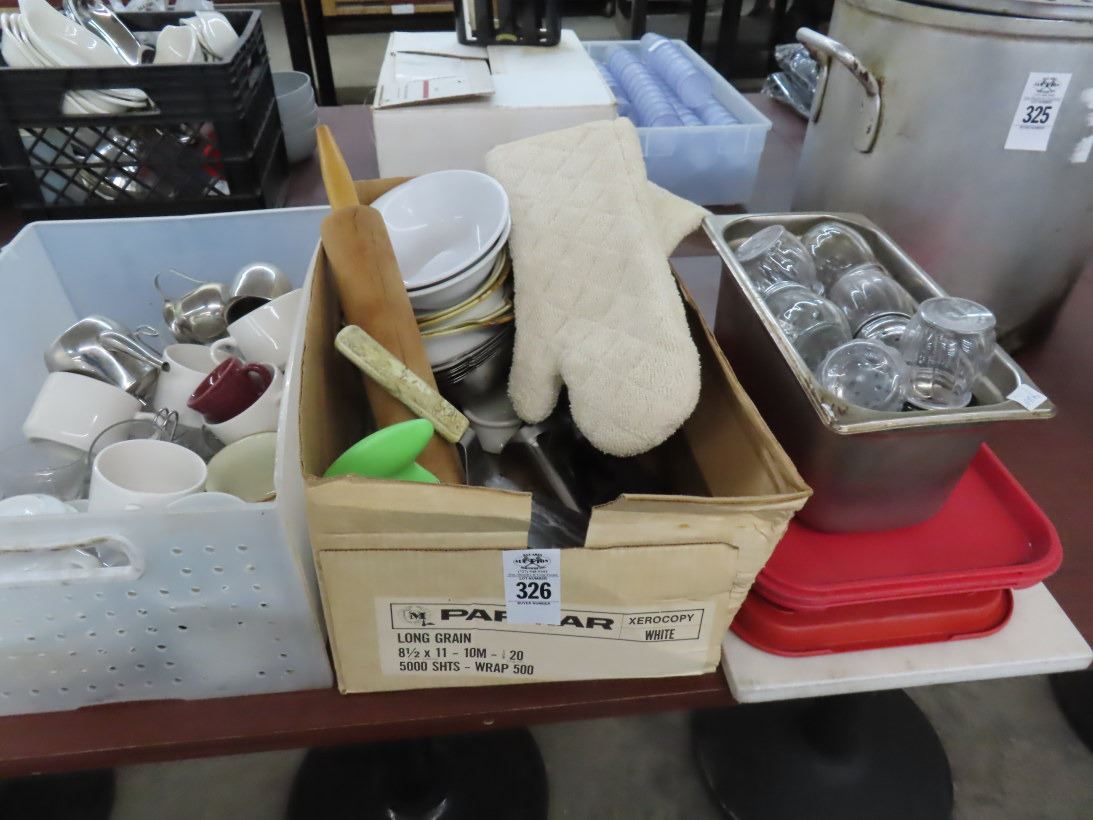 Bins w/Creamers, Cups, Utensils, Gravy Boats, Shakers, Trays