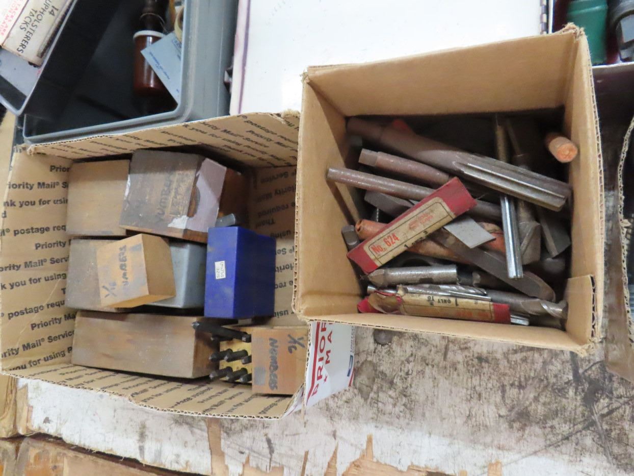 Bins w/Hole Saws and Hand Tools, Letter/Number Punches