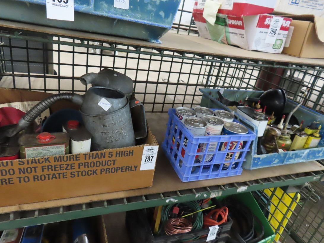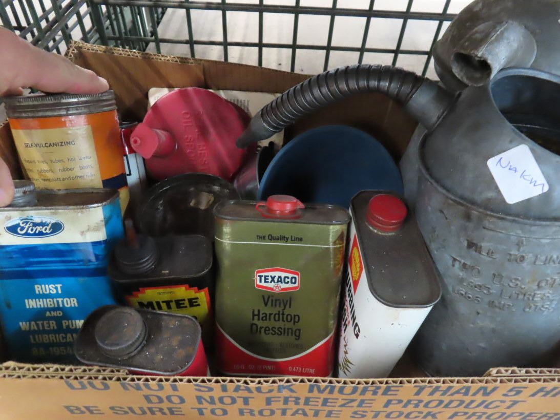 Bins w/Vintage Oil Cans