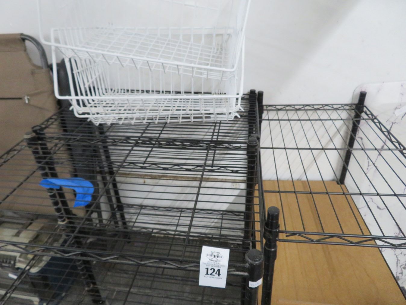 Black 3 Shelf Metro Rack 30" x 23" (3), 2 White Wire Baskets
