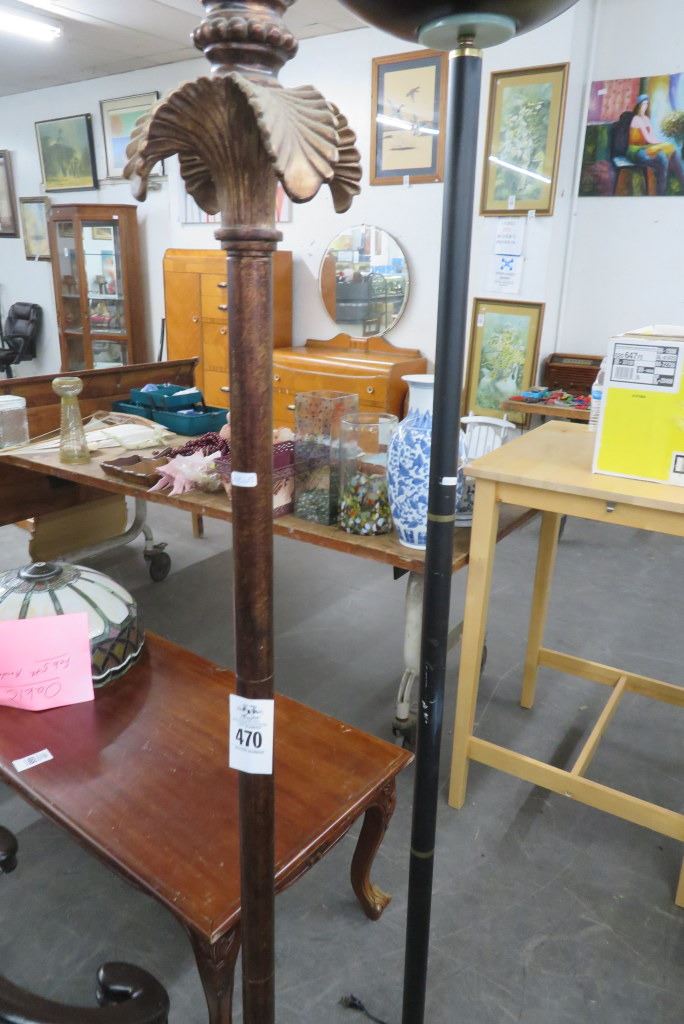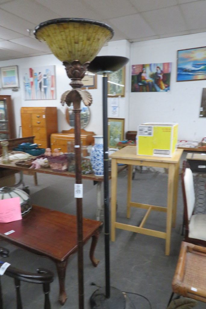 Black Metal Torchier Lamp, Palm Leaf Motif Torchier Lamp