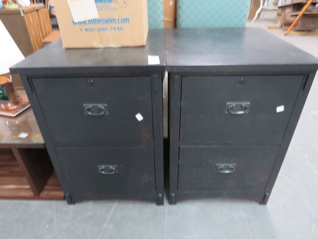 Black Painted 2 Drawer Legal File Cabinets - Pair