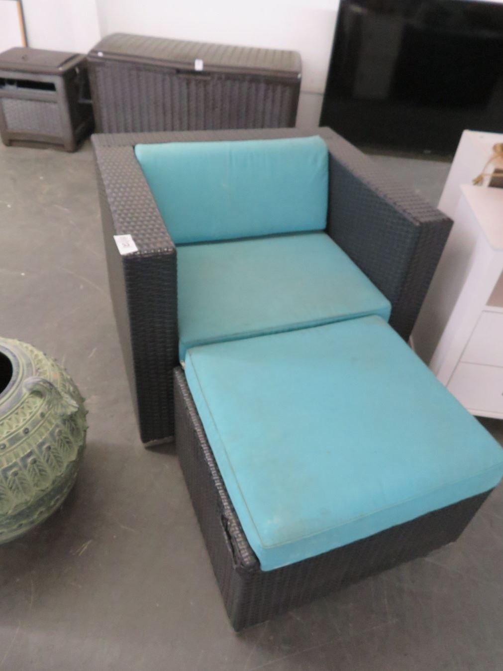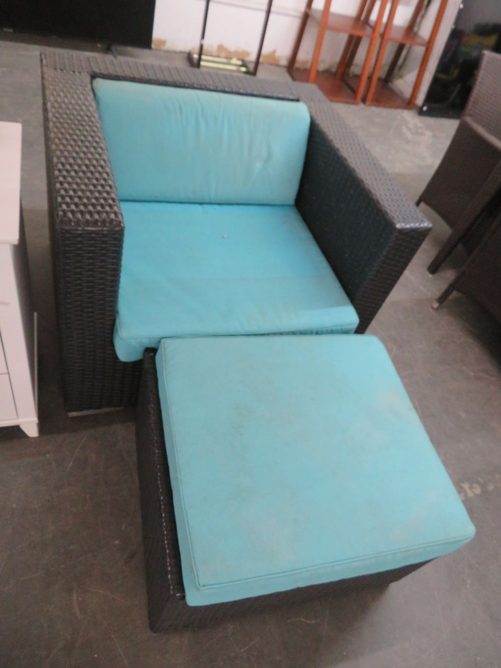 Black Rattan Patio Lounge Chairs w/Footrest (Pair)