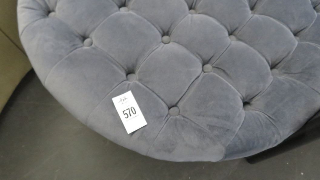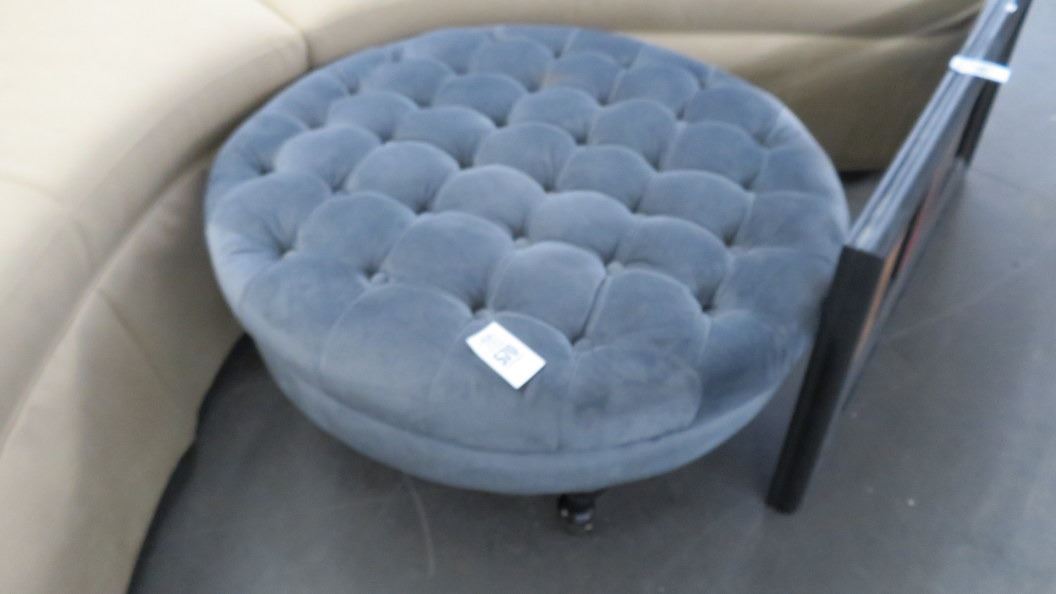 Blue Fabric Button Tufted Round Ottoman