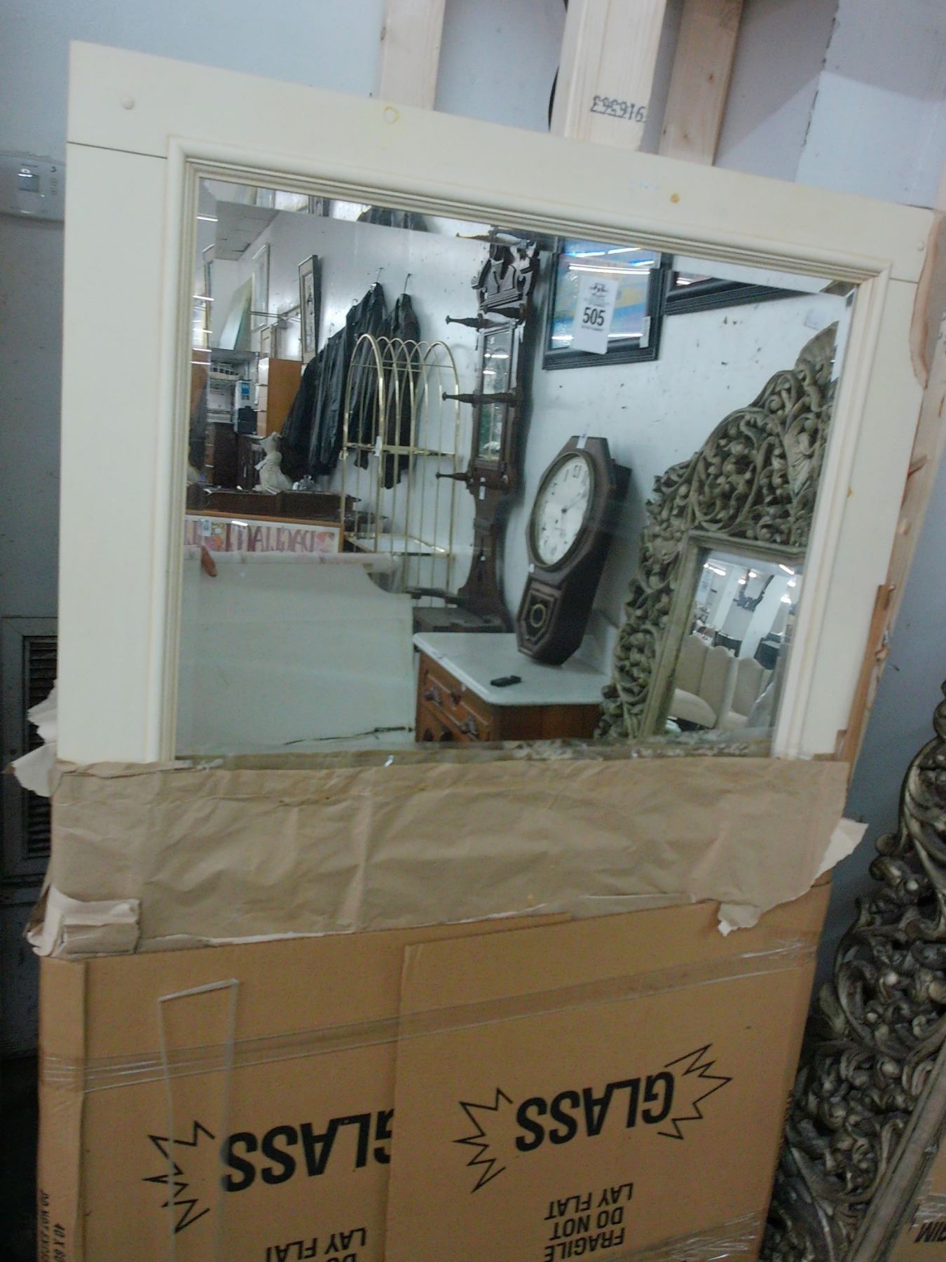 Bone Bevelled Framed 3' X 5' Mirror - No Shipping