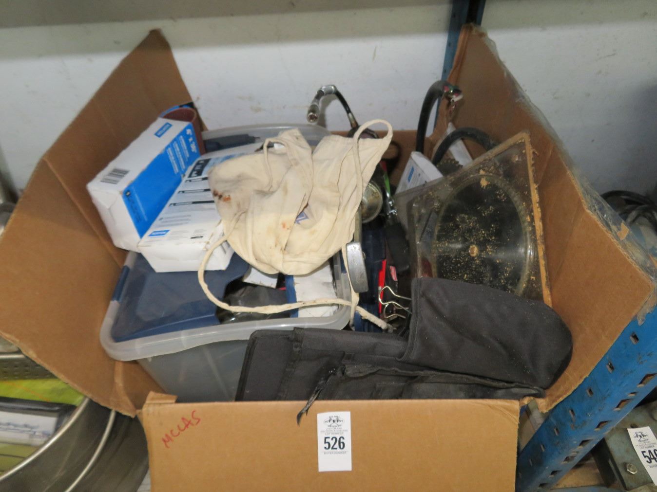 Box of Air Pump, Saw Blades, Heat Shrink Tubing, Abrasives