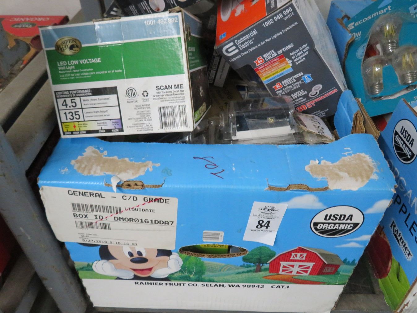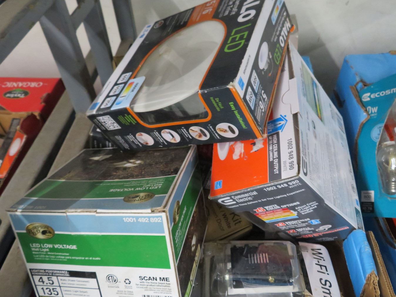 Box of Asst. Halo Lights, Flood Lights, Plugs and More