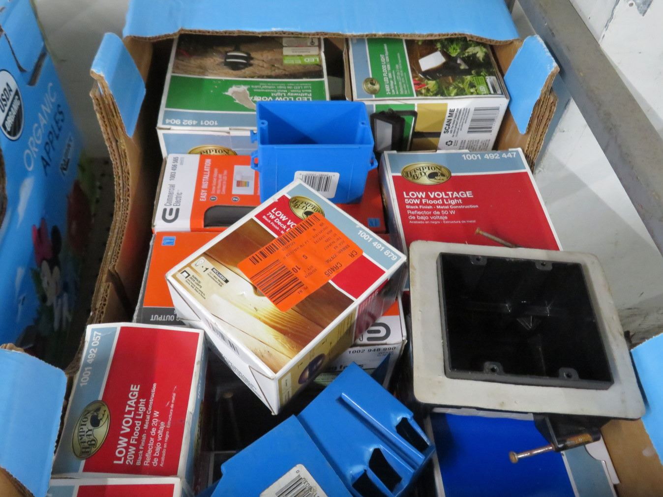 Box of Asst. Outlet Boxes, Flood Lights and More