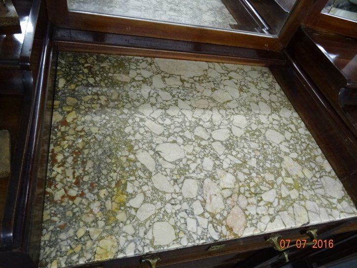 Brass Accent Marble Top Chest of Drawers w/Mirror