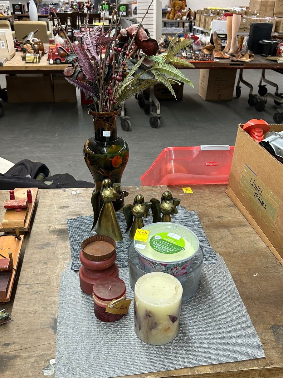 Brass Angel Candlestands, Oriental Vase w/Silk Florals