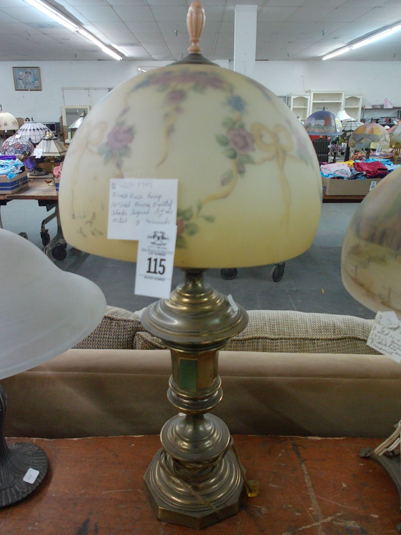 Brass Base w/Reversed Painted Floral Shaded Lamp