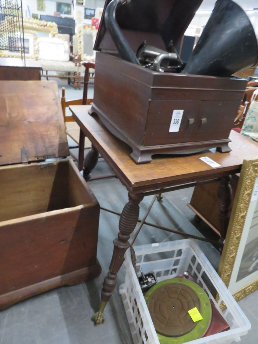 Brass Claw Foot Tiger Oak Spun Leg Table