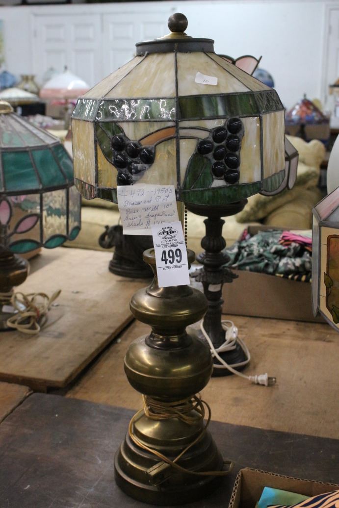 Brass Lamp w/Leaded Glass Fruit Motif Shade