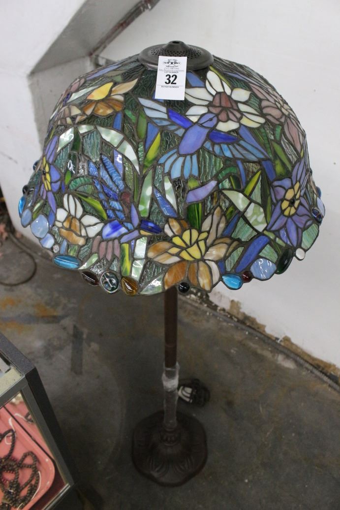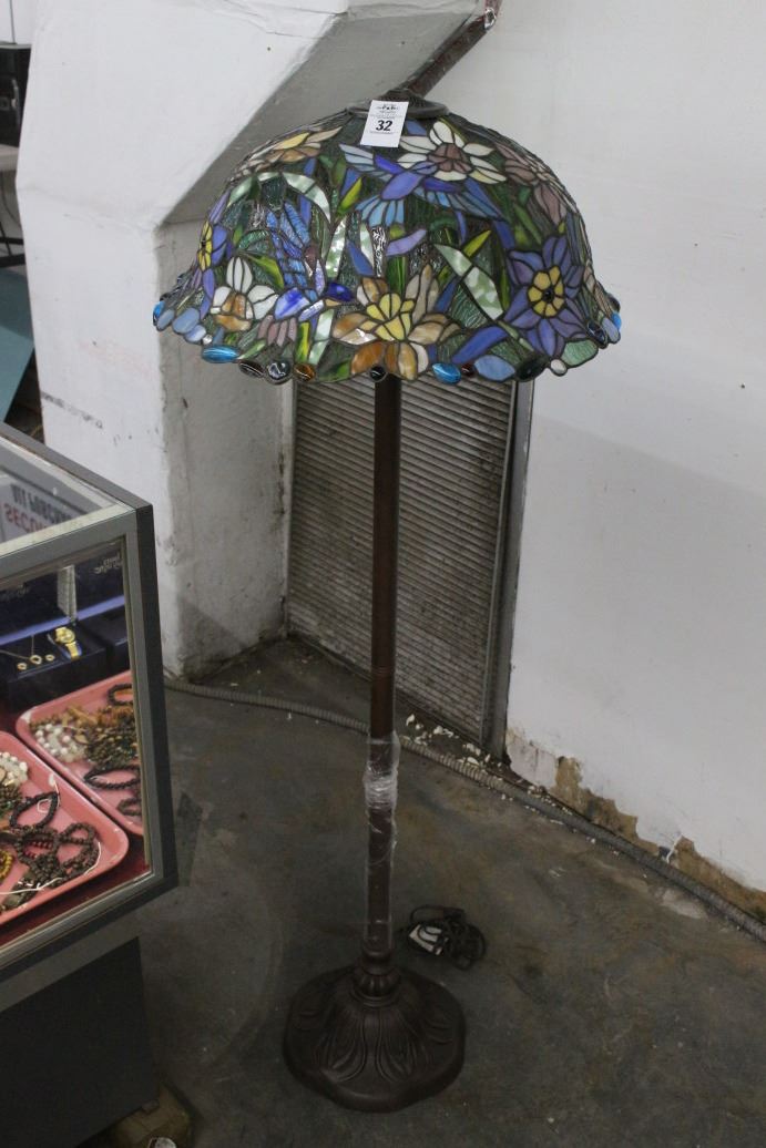 Bronze Style Floor Lamp w/Ornate Glass Leaded Shade