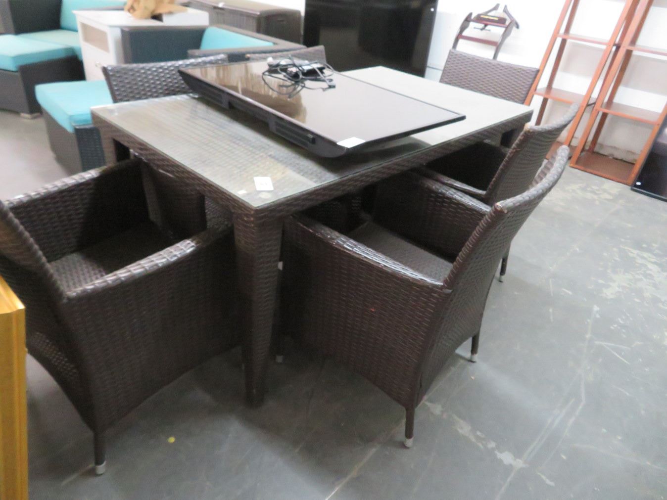 Brown Rattan Patio Table w/6 Chairs - 5' x 3'