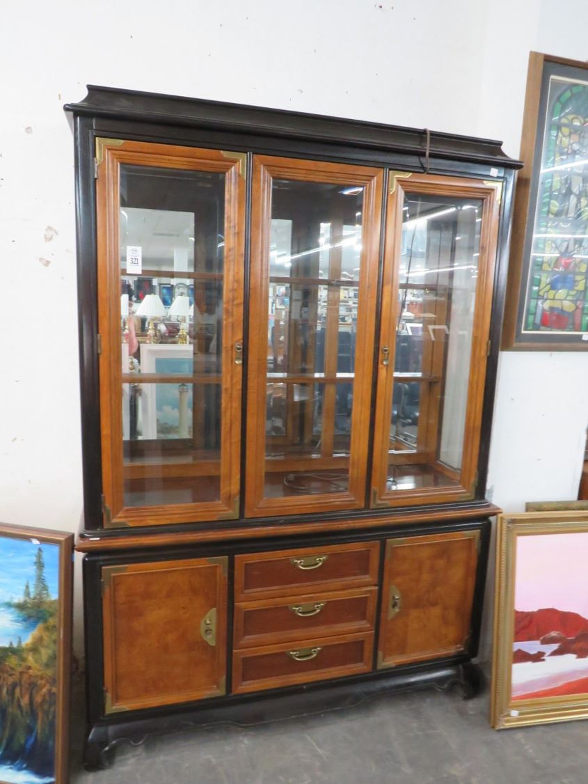 Broyhill Burl Brass Trim China Cabinet