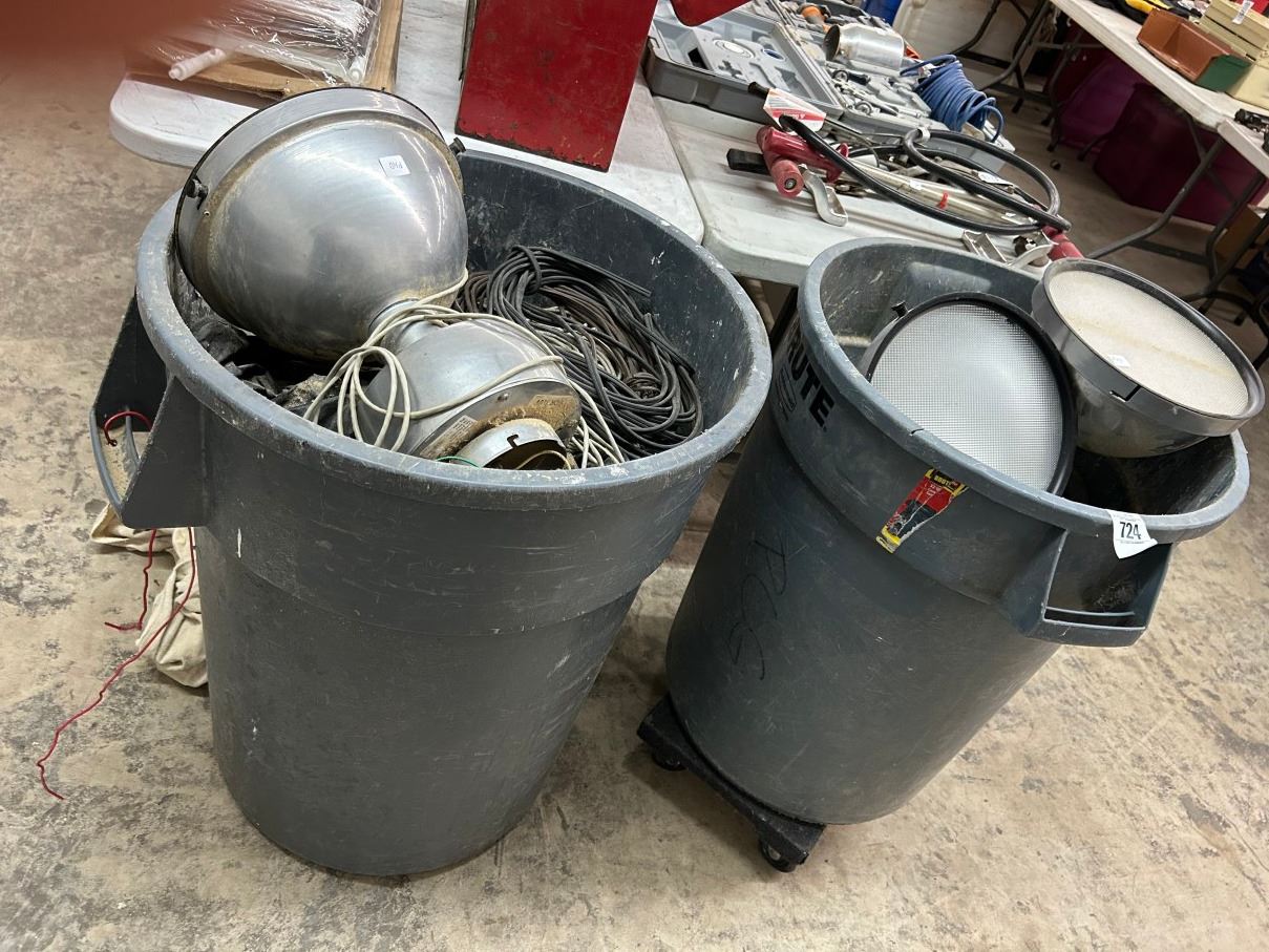 Brute Waste Cans 2 w/Dolly, Warehouse Lighting, Wire