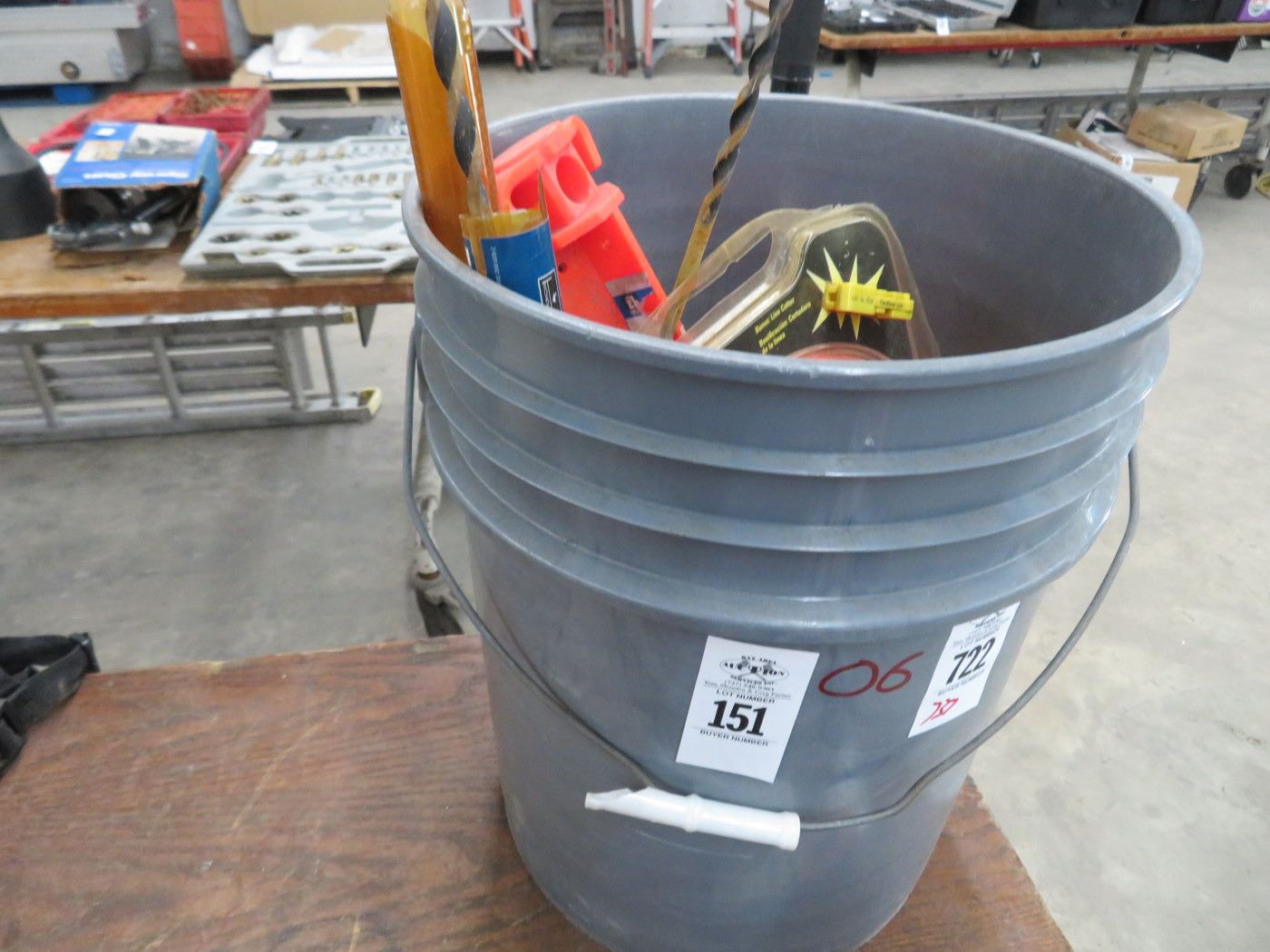 Bucket w/Trimmer Line, Large Drill Bits, Jig Line Hammer