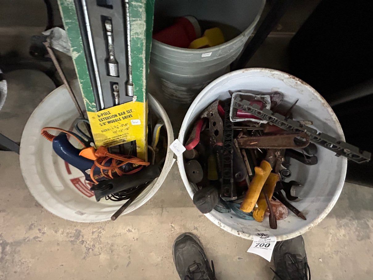 Buckets 3 w/Asst. Hand Tools, Glue Gun, Flashlights