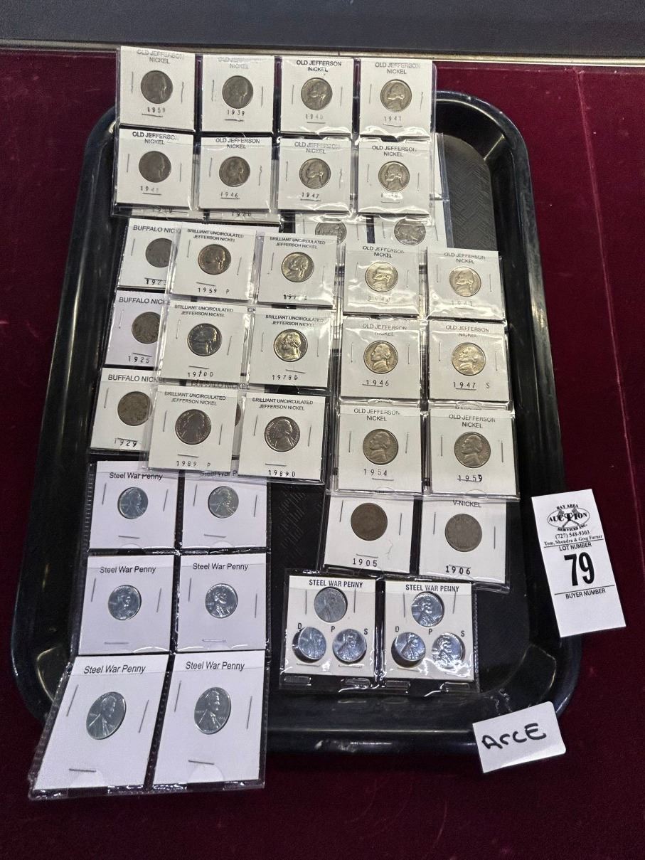 Buffalo/Jefferson Nickels 38, Steel War Pennies - 12