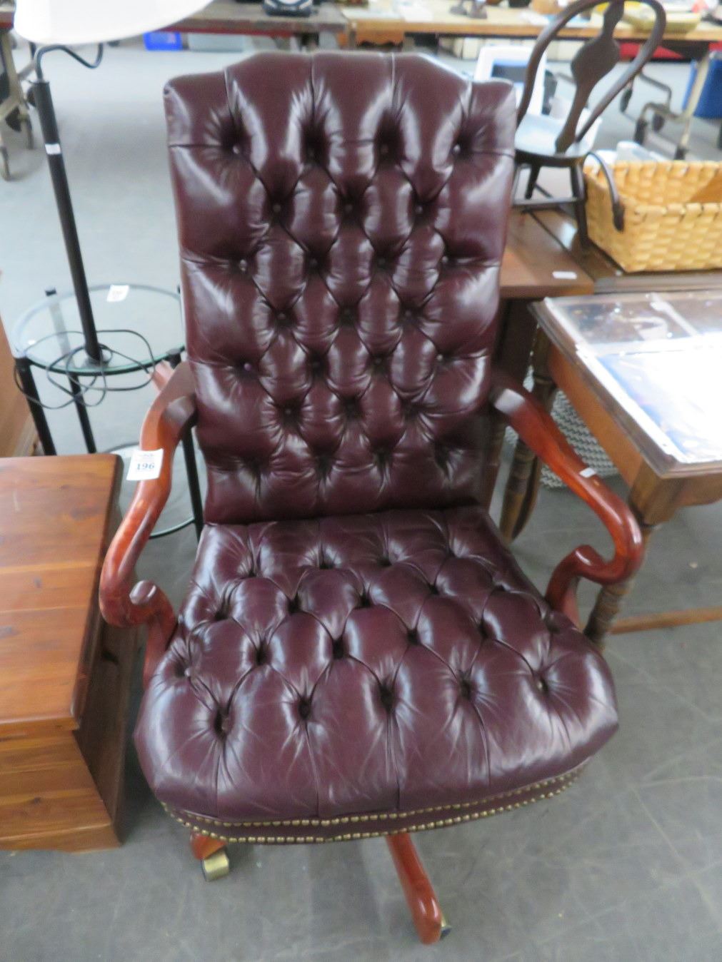 Burgandy Buttoned Tufted Leather Executive Armchair