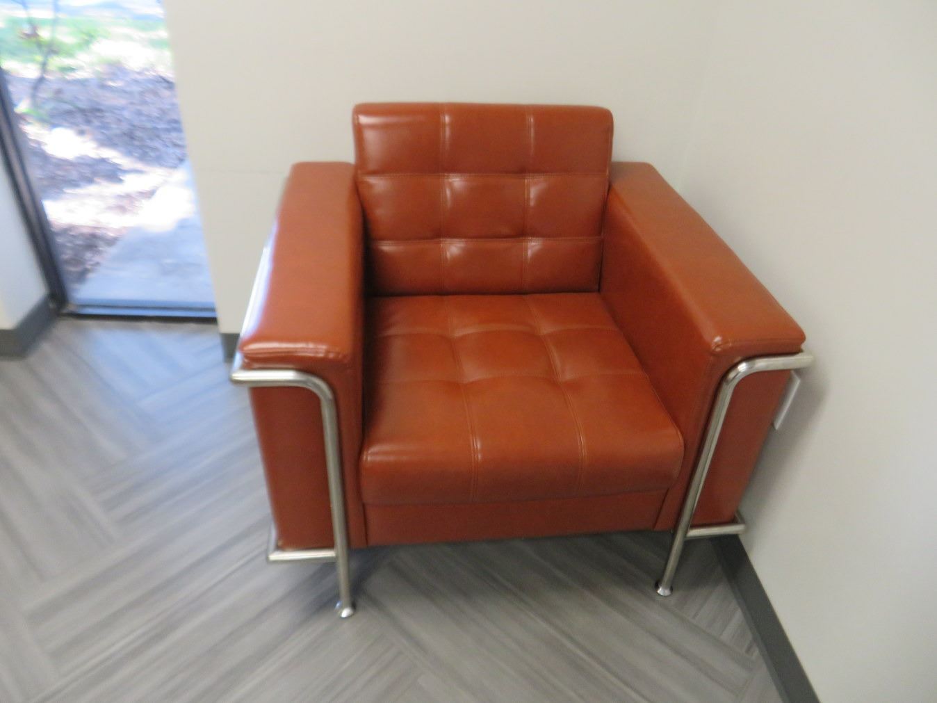 Burnt Orange/Chrome Twin Leather Sofa w/Matching Armchair