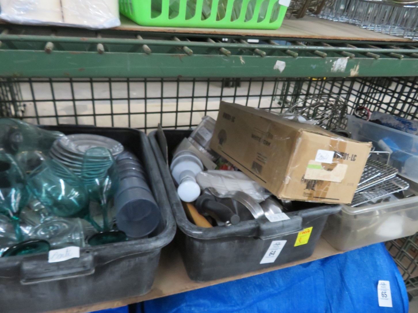 Bus Pans, Cambros w/Asst. Dishes, Glasses, Asst. Supplies