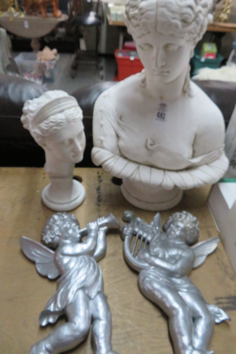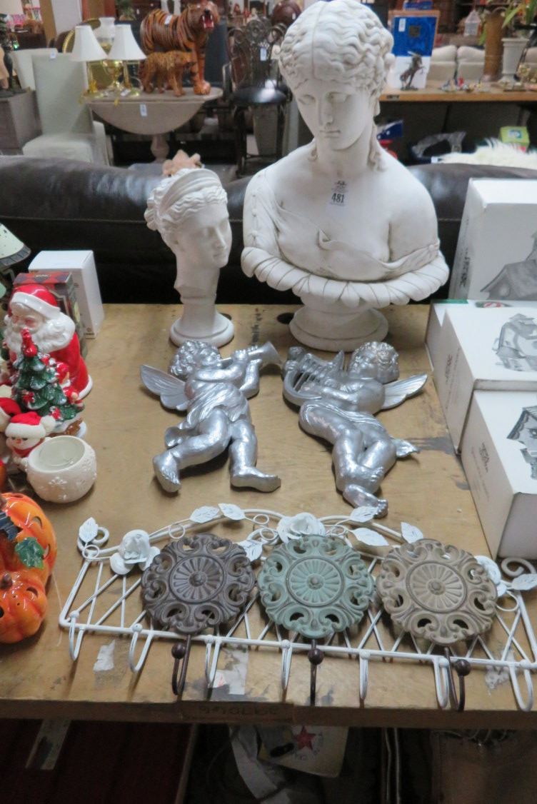 Busts (2), Cherubs, Wall Hooks