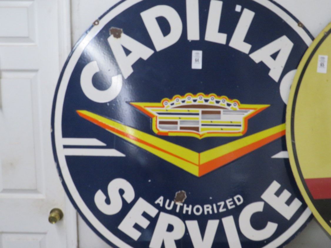 Cadillac Authorized Service Metal Double Sided Vintage Sign - 40" Diameter