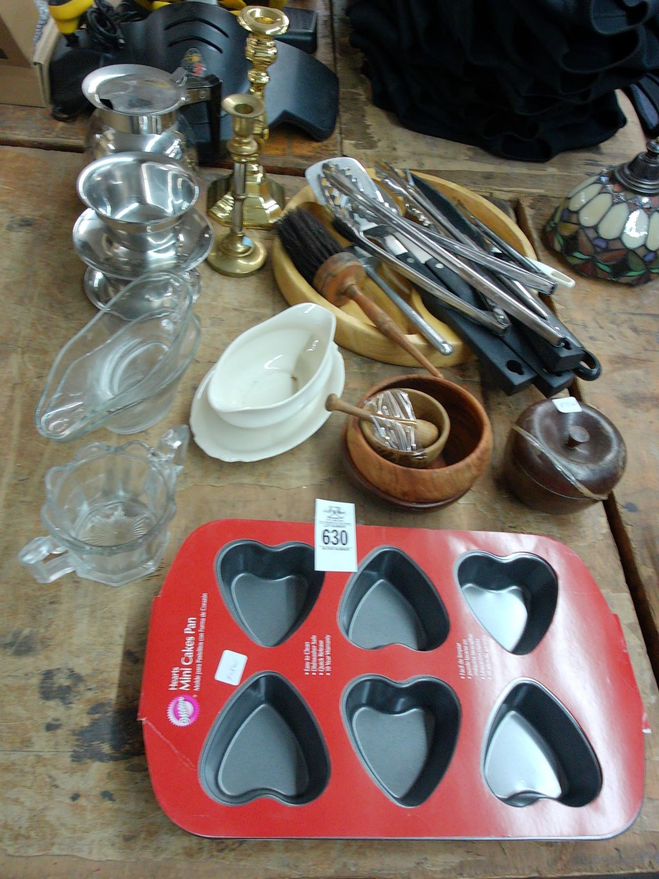 Cake Pan, Utensils, Brass Candlesticks, Motor Pedestal, Dinnerware