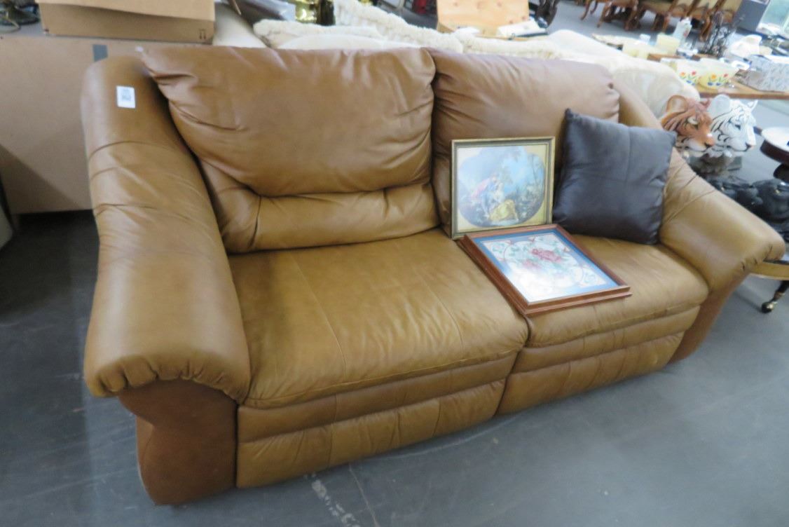 Camel Colored Leather Reclining Sofa
