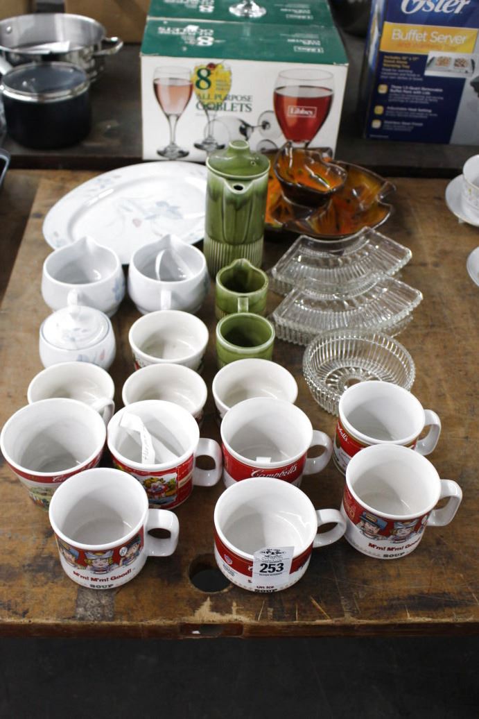 Campbell Mugs, Pressed Glass, Asst. Serving Platters/Dishes