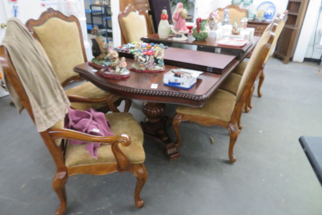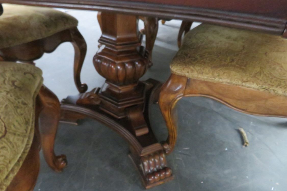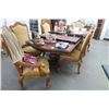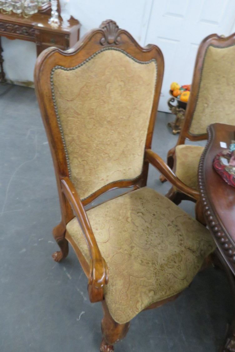 Carved Mahogany Dining Table w/8 Tan Fabric Chairs