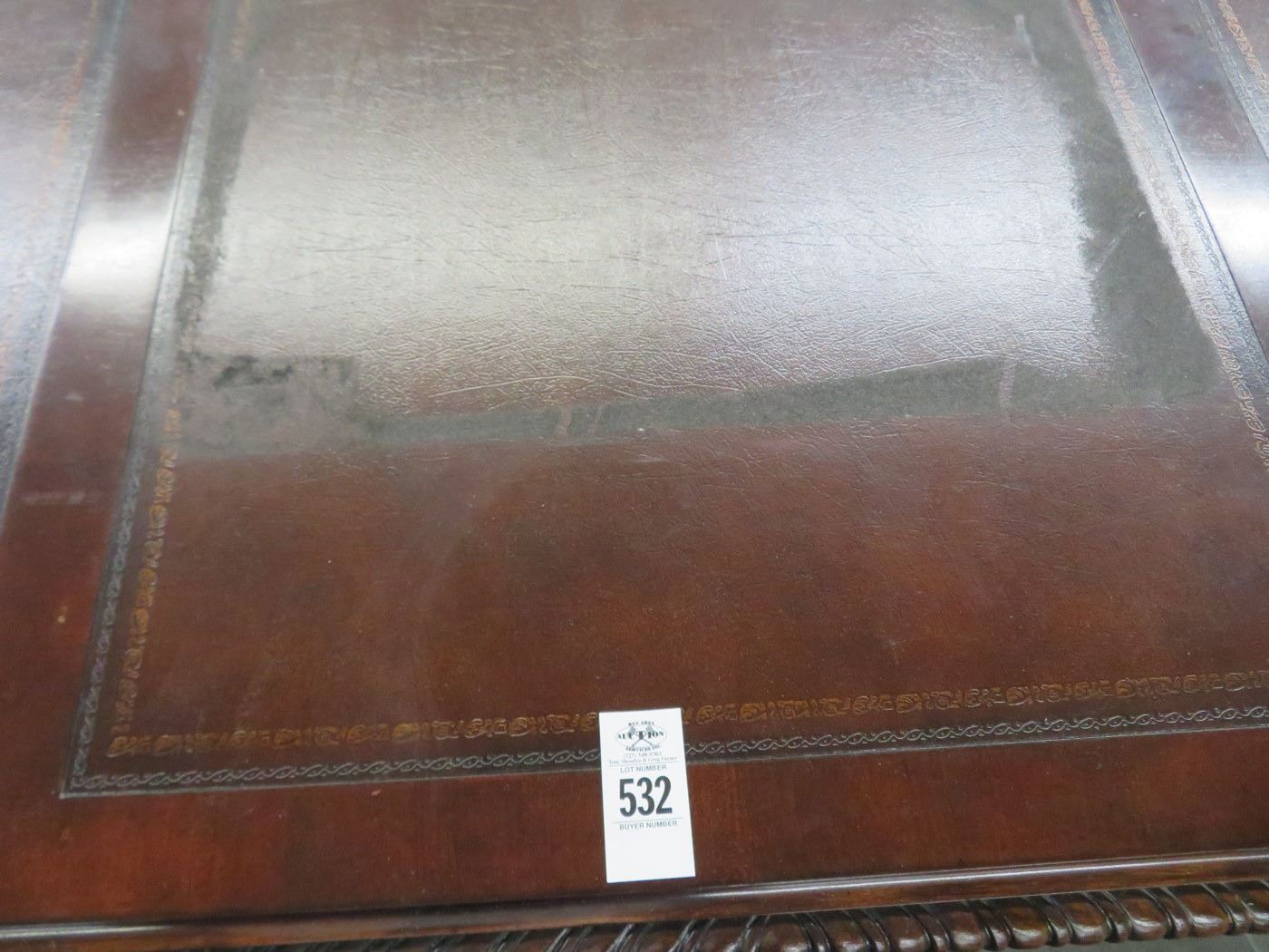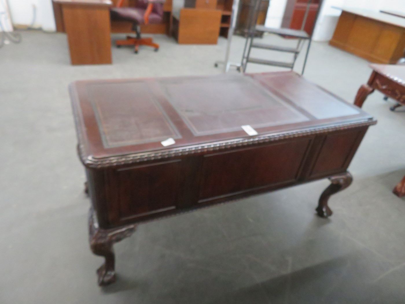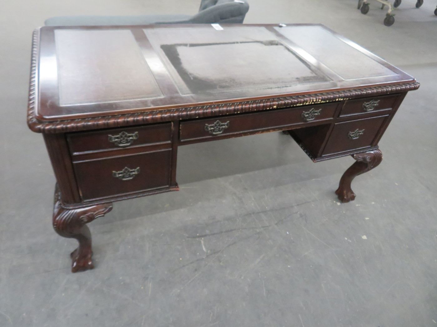 Carved Mahogany Leather Inlay Clawfoot Executive Desk