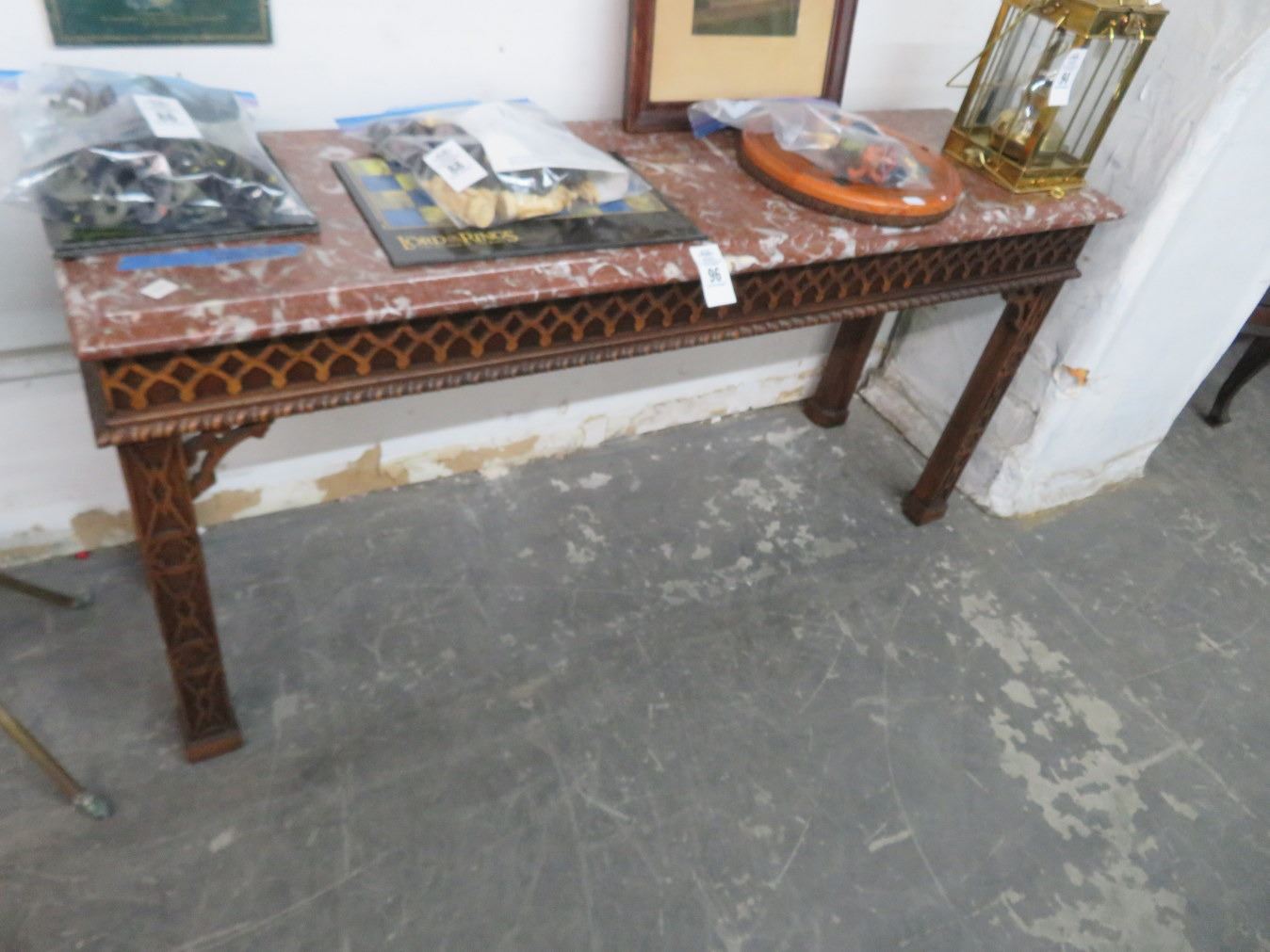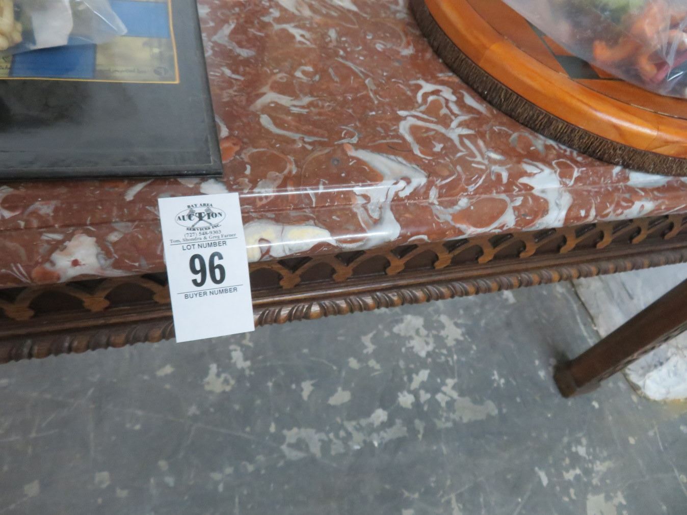 Carved Mahogany Marbletop 5' Hall Table